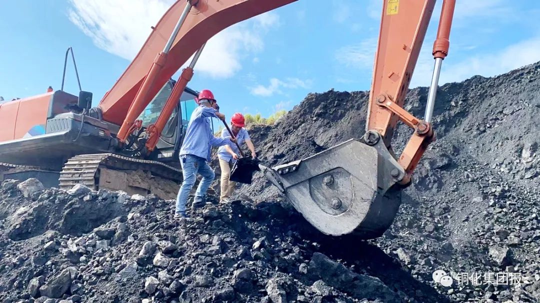 7月12日,在新橋礦業(yè)公司露天礦銷售中心發(fā)貨現(xiàn)場,銷售員冒著高溫酷暑取礦樣。